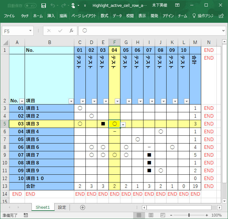 エクセルVBAでアクティブセルの色を変更する方法とショートカットキー