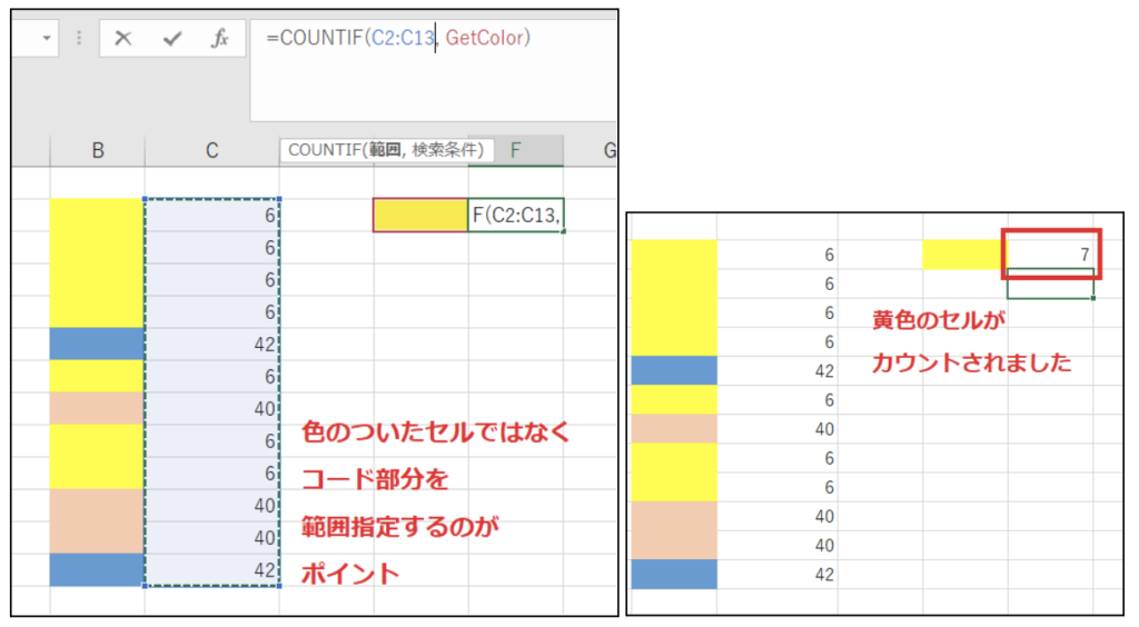 色付きセルを数える方法の概要
