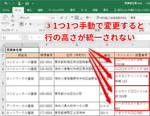 解決方法5: 行の高さを自動的に調整する