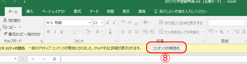 コンテンツ有効化を表示するにはどうすればいいですか?